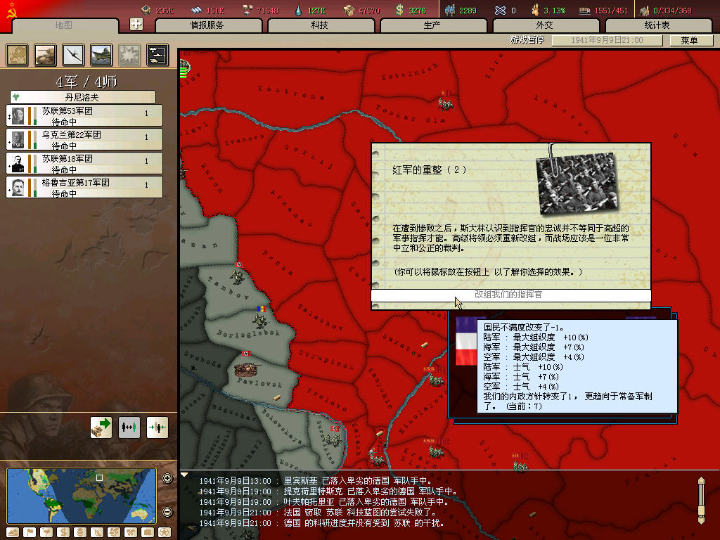 事件重复是读档的缘故,有时一个撤退方向不对,二十几个师就给坦克撵上了