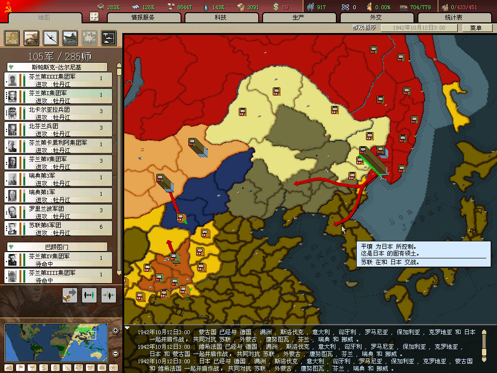 日本入轴后,苏联与之补签的和平协定异常强大.不但可与对方死敌结盟,即便事件宣战也完全无效