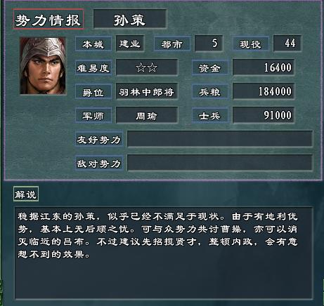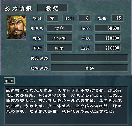 平衡了各势力,曹操初期不再弱不禁风,并修正了小沛有2000冲车的bug ~ 汗~