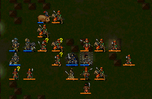 第一回合孙坚后撤,集体往前走一点,小夏侯走到袁绍前面步兵的斜下方把敌人的一个步兵勾引过来砍他(还有个弓兵也会过来射他)敌军阶段黄盖程普撤退。