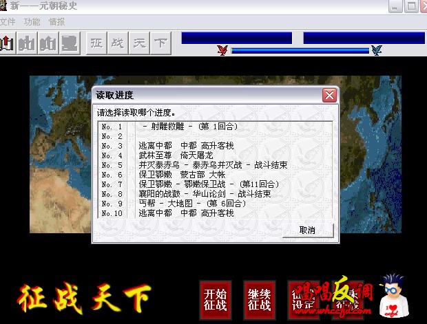 制作了很久以后还是打算放弃,一个是因为引擎兼容性,第二也是因为给新金庸群侠传制作引擎,抽不出时间来制作,第三也是剧本的BUG让人崩溃。不能兼容WIN7的打击很大,当然这个跟引擎把按本有关。当初看到岱瀛的一个帖子,他曾提到用他的引擎制作出富甲天下,制作出三国志,因而萌生了制作《征战》这个想法。