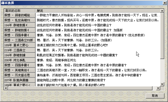 剧本9替换成真正的历史名君主复活,添加刘秀,刘彻,李世民,铁木真,去掉了张角,马腾,董卓,袁绍。
