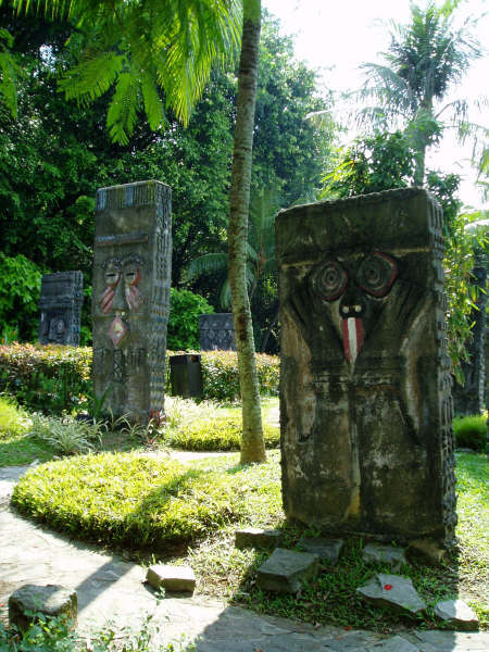 在新加坡著名的旅游景点圣陶沙(Sentosa),有这样一片位置偏僻而特别的“石林”,石林里有近二三十块大石碑,每块石碑上面正反两面均是同样的一张脸,而每块石碑上的表情各不相同。