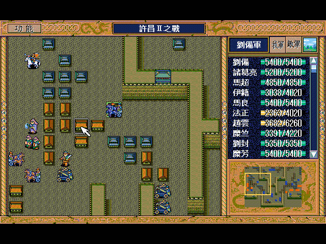 另外打算改进的一点是许昌I去吃司马懿中间走的那一步,准备在路上聚一个临时丁四(花五似乎地形不允许)给马超烧掉,这样这一步就不亏了