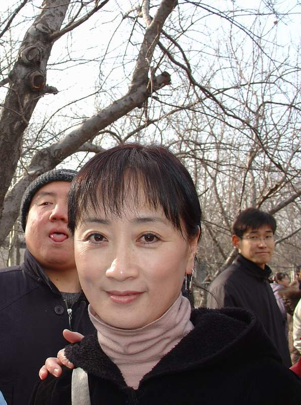 一夜北风紧,开门没雪飘。7号早上8:30,我骑个破车穿着那件极其醒目的蓝羽绒服哆哆嗦嗦冲到三环,在和同学汇合后倒了n次车来到大观园,而另外那位我高中同学的大学同学已经买好票在等了。说好活动是10:30开始,可快到11点还不见有人来。眼看人越聚越多,我掏出了记者证,与拿数码相机的同学一人一个,于是大门口最有利的地形被我们占了两席。