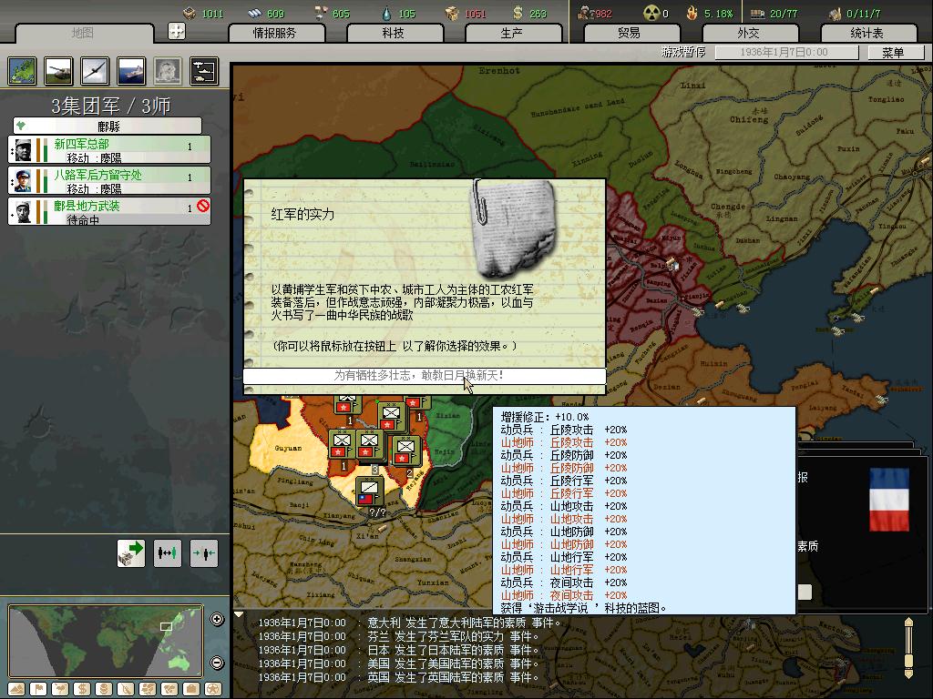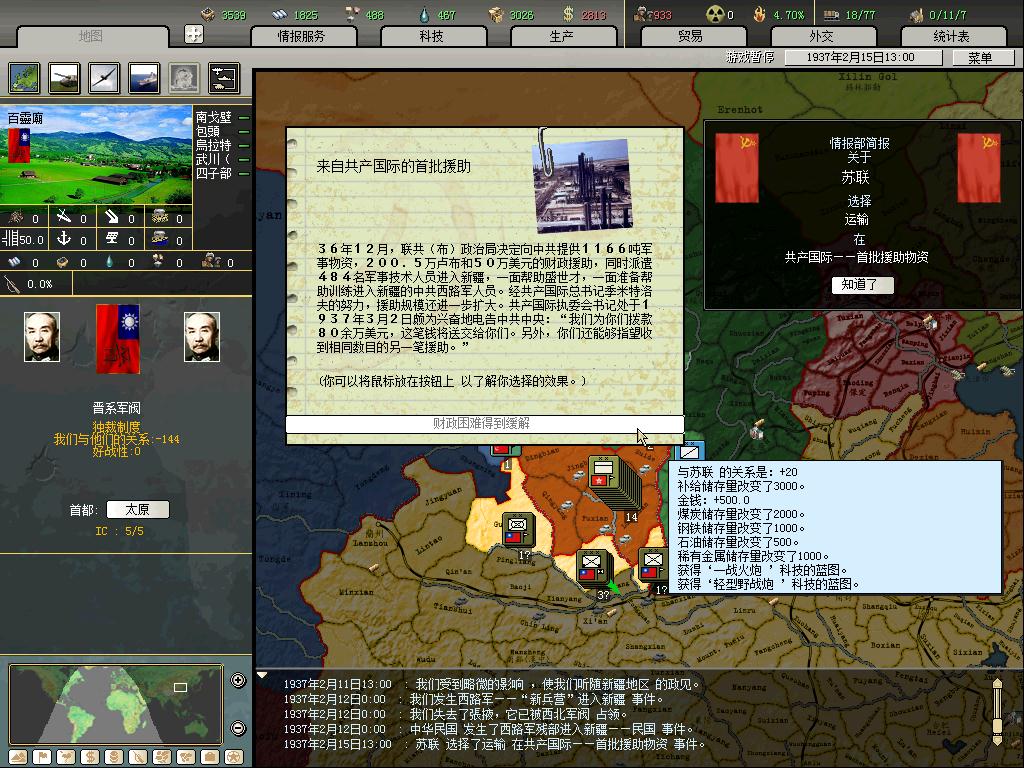 这时没急着搞野战炮,等图纸和3级科技组,人民战争理论过渡(期间工业部长换陆军编制研发型,情报部长换装甲兵研发型),完成后3级科技组出了就36野战炮,否则继续后方补给站过渡