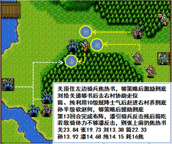 说明:由于对【关纯/刘封+4贼+6大策略】路线后期烧火资源有担忧,故决定尝试关纯刘封并用,庞统转军乐路线