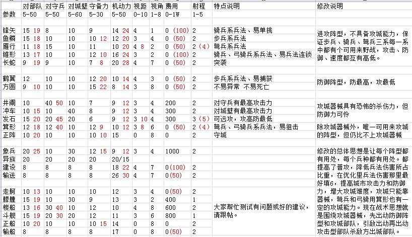 阵型平衡修改,提高玩法,请帮忙测试和给意见(现在可见了)