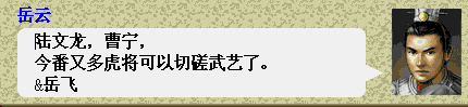 二虎齐归宋战前R场景对话有BUG:岳飞的台词岳云也说了一遍