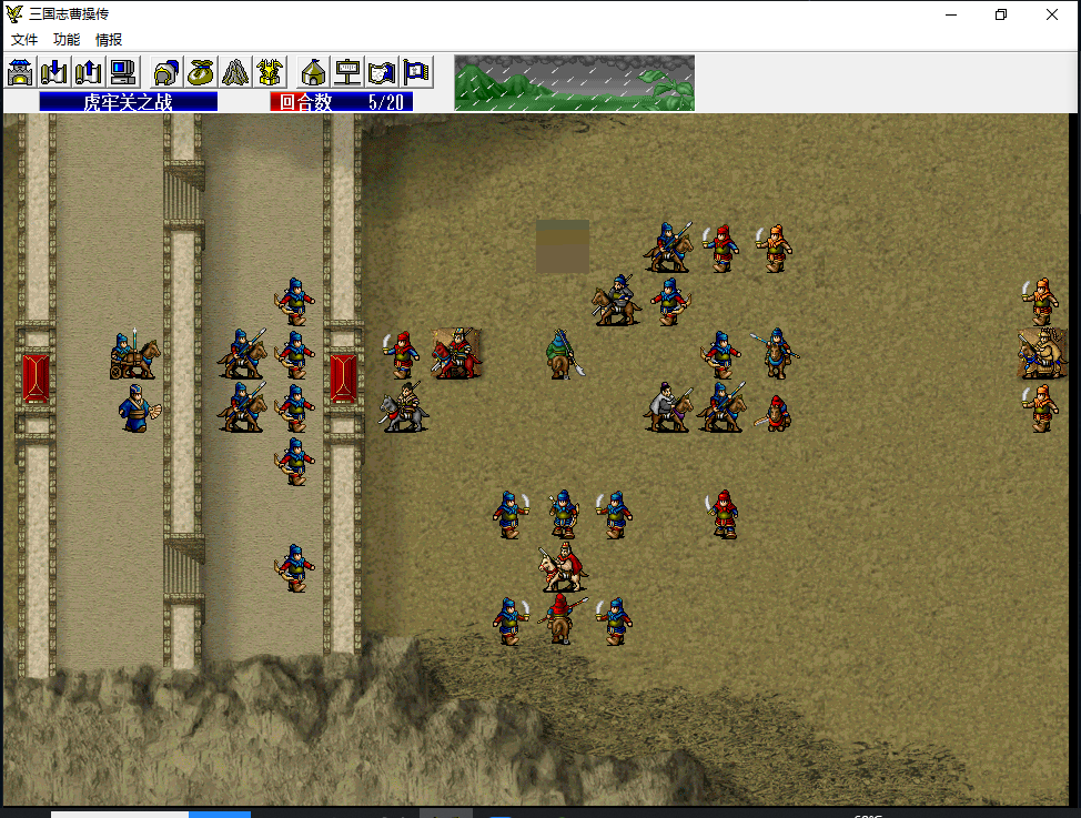 那友军2个步兵一旦拉出来就要消灭掉。我是牺牲弓箭手拉到吕布那里送掉。如果给敌方加入一个郭汜或李傕的步兵左侧的吕布就解放了。虎牢关最好的布局是两个兵营都在手上,吕布被我方2个步兵堵到死角上。