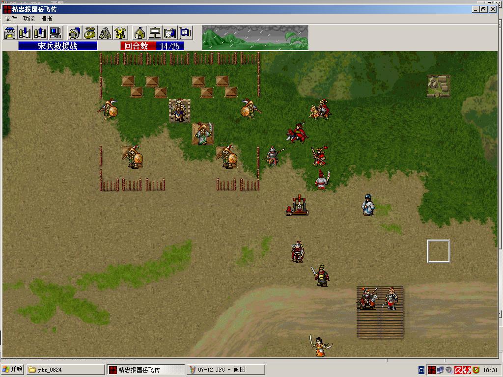 再说重点的东北路。一开始梁红玉给韩彦直加攻,牛皋加敏,岳云走到山地上。韩彦直行动时会自动引出熊兵及引上来一个骑兵,读档保证岳云靠格挡挺过第一回合。顺便提一句,董先跟老何也不要跟几个贼兵纠缠了,第一回合是董先向东跑给敌军骑兵降防,第二回合老何再砸他一下,接下来还能反击多砸一下,尽量帮岳云打通道路。