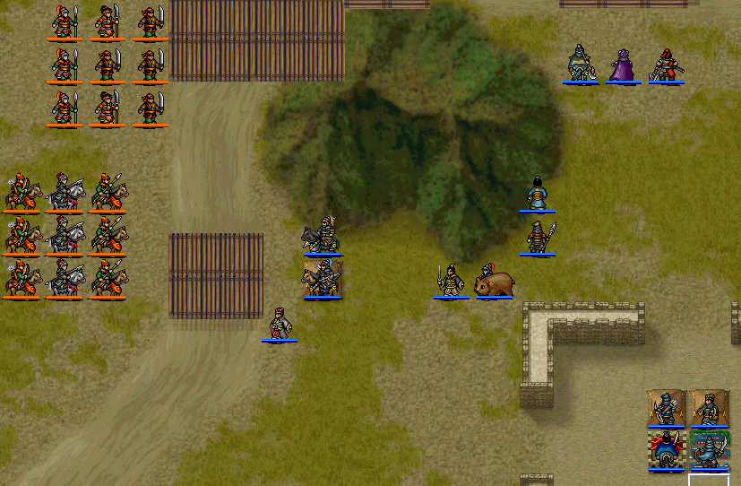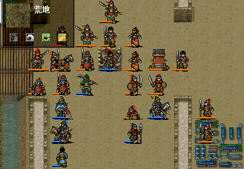 上路弓兵被郭图加过好多次血了,不要紧,实在不行后面李典出城一刀一个,给他们加血总比给步兵加血强,这关比较特殊,弓兵是能被反击的。徐晃曹洪收掉那个武术家,曹操往下走一步撑大圈子。
