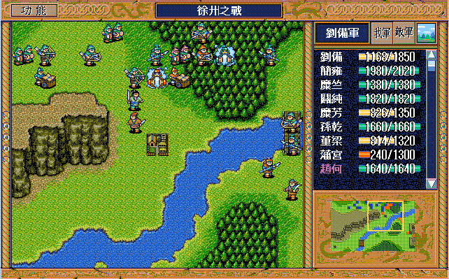 本战与周瑜现在的打法基本一致,刘备、简雍、关纯、糜芳及张辽的行动略有差异。糜芳比周瑜的多得12点,由于在小沛落后12点,正好持平;张辽多用一次策略,不过对今后也没什么影响。