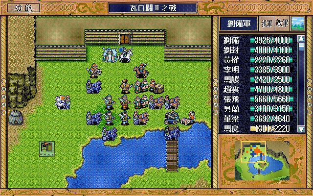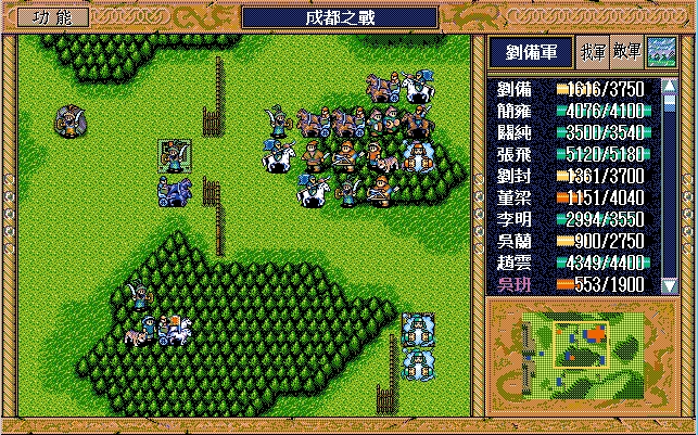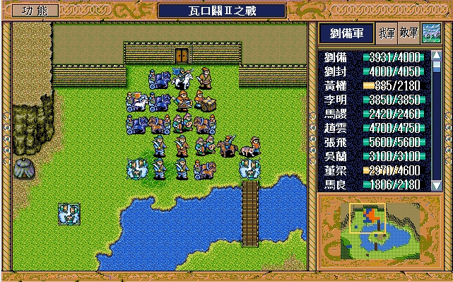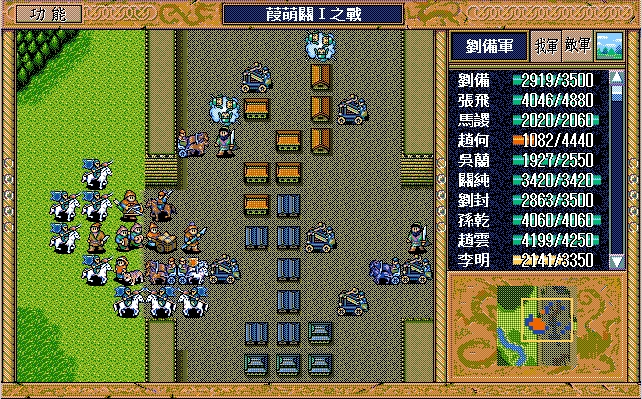 当初在打完长坂坡做规划时,只是从全局的考量,才决定本战上赵云而不是马良;幸亏是这样的安排,若是上了马良,且不说行军速度慢(一匹的卢马分不了两个运输队)而导致晚成阵,进而影响赵何的反击量,就他比赵云低六、七十点的策略值以及比傻瓜赵何还低的防御力就撑不下来;而且从上路走的人除了要有高策略值,还得会用假情报,唯有赵云合适。本战的策略值相当紧张,除了刘备由于助攻多了几十点,其他人全部见底,又是一场走钢丝的战役。经过艰苦卓绝的斗争,赵何、孙乾也同原来一样完成了状元、榜眼的光辉历程,孙乾本就是计划中的事,赵何硬是挤出了8点富余,最后变一下弓兵,他俩携手成为“全兵种99殿堂”的首批会员。