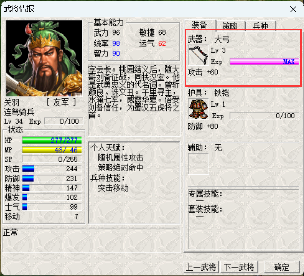 关于问题2,仔细测试后发现是S形象的问题,在游戏中S形象表现正常,atk mov spc看起来均无异常,但是对该单位使用计策时会失去计策动画并卡顿。换了形象后正常了