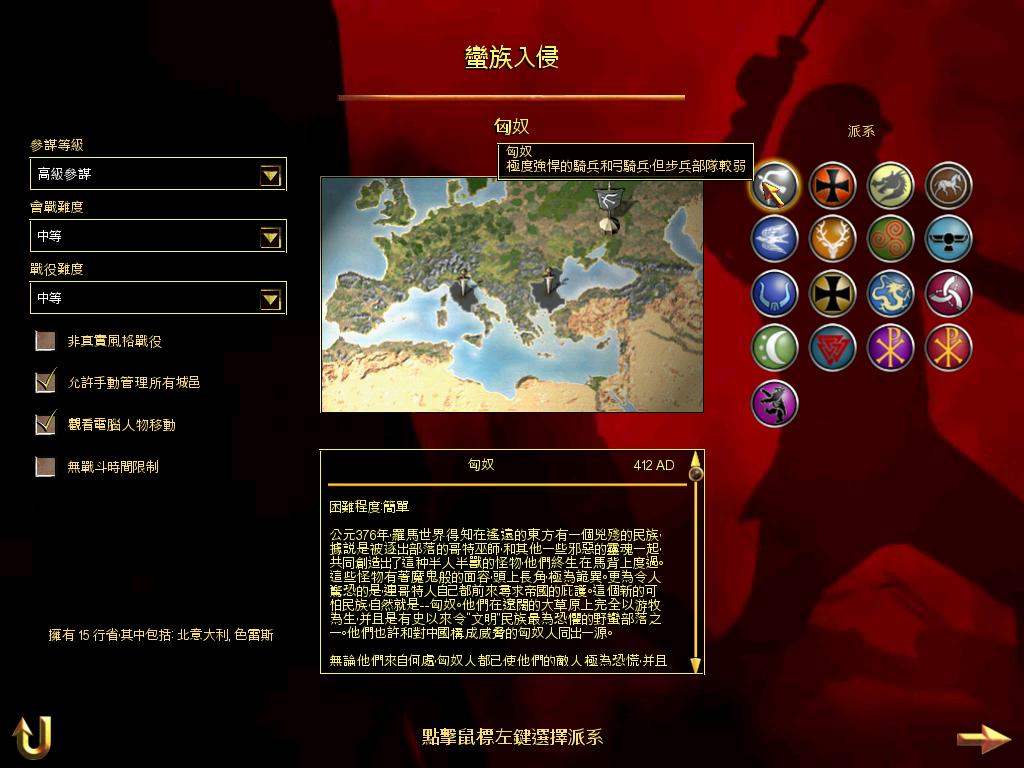 罗马全面战争的中文版本早已由台湾翻译发行。蛮族入侵也已有游侠左贤王汉化组的汉化包推出。