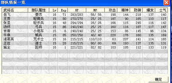 战前等级:岳飞、汤怀、张显、王贵、诸葛英均为3级