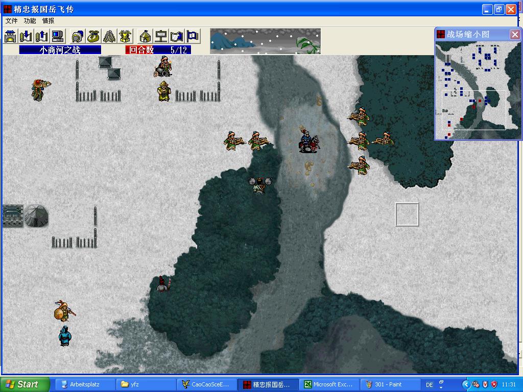 木阵没太多的花样,岳云引出伏兵后跑回来。敌军的阵眼武将周伦居然不是坚守原地,跑过来后正好被我军干掉,木阵告破。