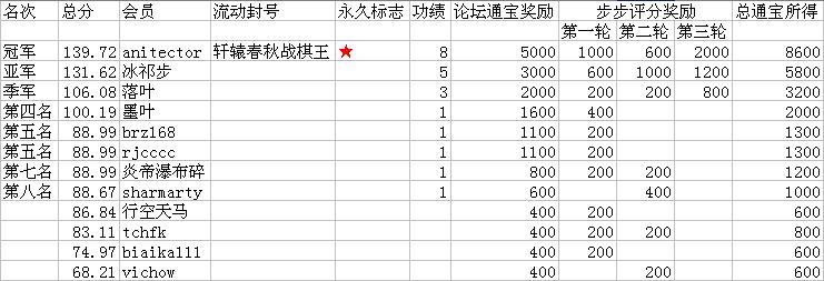 会员anitector最终获得了“轩辕春秋战棋王”的流动称号,让我们祝贺他!