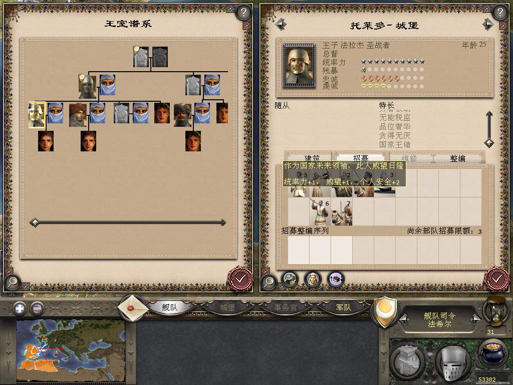 次月。父亲的命令又下来了。这次的任务是攻克西班牙的托莱多。据间谍回报,该城堡防守薄弱,才300+的兵力。而且西班牙国王啊方索也在城堡内。抓住或是杀死都是大功一件。对我得到王储之位非常有利。父亲把这么重要的任务交给我看得出非常疼爱我。