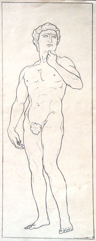 大卫。这是照着照片画的,常用素描表现的主题用线描勾勒倒也别有情趣。