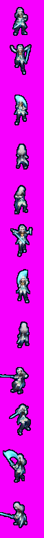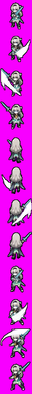 3、替换后保存第一张图里角色的动作和朝向,剑光特效则以根据武器的颜色和整体穿着风格进行改变,剑光特效对背景不要透明,要完全显示特效的颜色对武器和角色可以一定程度透明