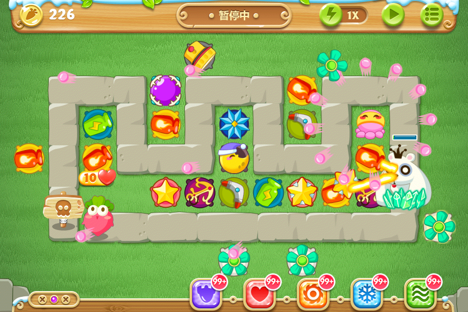 注意只保留火力范围内的炸弹星,一旦周围的道具清完了,立即拆掉换成月亮塔