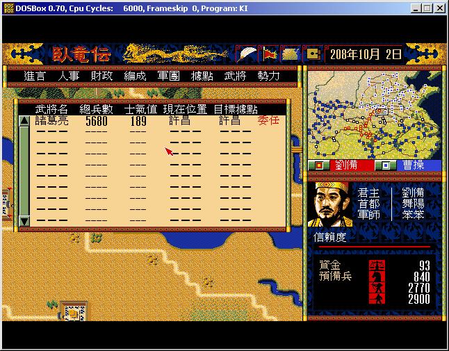 7、解散诸葛亮,重新编制诸葛亮,4步兵2弓兵,委任在舞阳。编制赵云全骑兵(不多),占汝南一路的空城。注意不要占最右边的空城,不跟曹操接壤。