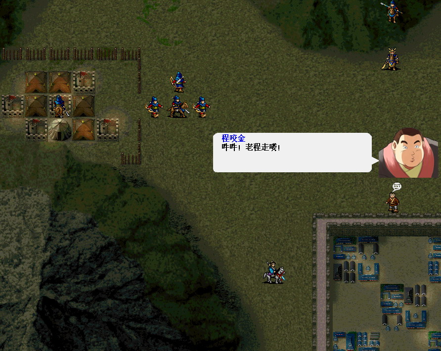 第6回合管毅进营地,之后笔者一直将管毅贴山移动(可以绕开之后的敌军,参看下文)。第7回合,左天成部到达。第8回合敌军回合,大脑袋成功吸引左BT。