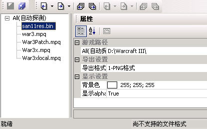 你要从“打开”->“日韩”->“KOEI”里面打开。“自动探测”并不识别三11的bin文件,它主要是支持bmp,jpg这种单个的图像文件