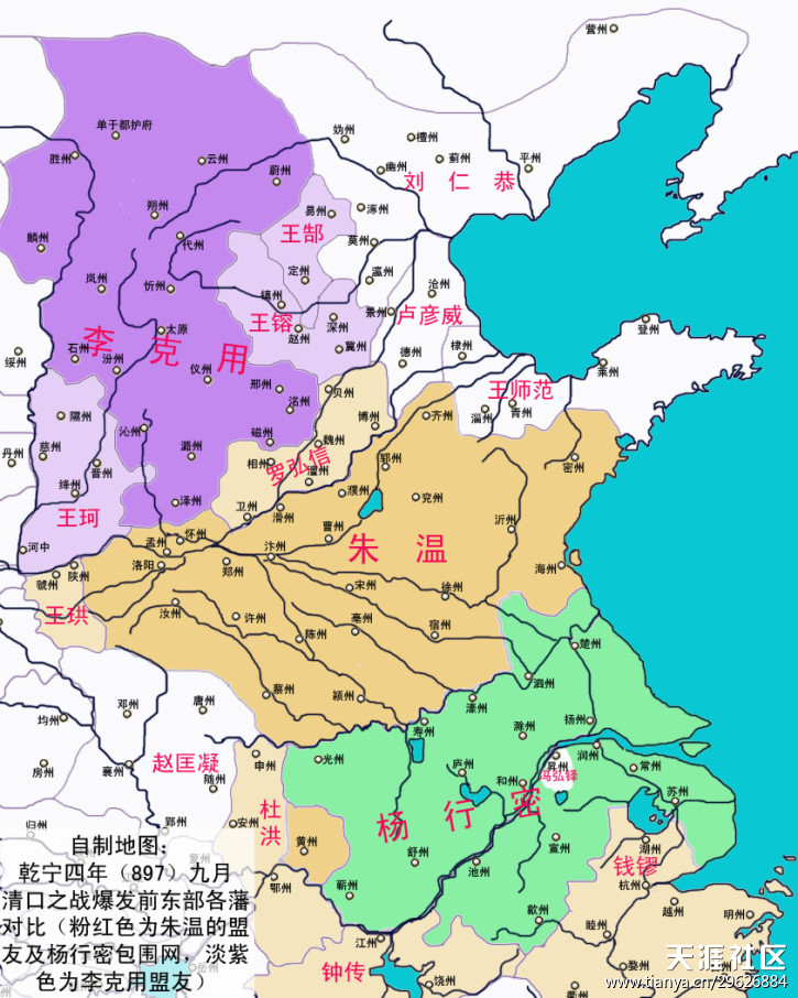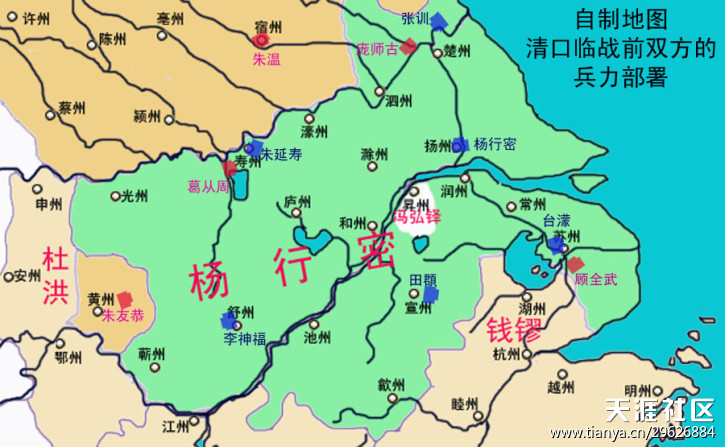 经过一番准备,至九月,朱温为一举吞灭杨行密,专门编组的三个方面军已完成部署,各就各位: