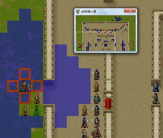 我军营寨里的人往上走一点,保证所有敌军往下方走,等所有敌军离开指定区域后就能过关了