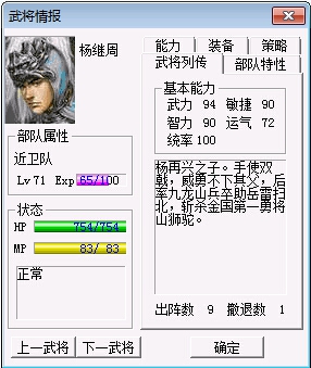 23级杨再兴:3智力,6统御力 (君山岛之战)