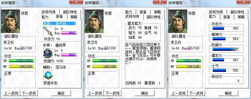 自己虽然装了xp,但主要用的是win7,3月6号兼容补丁出来后,高兴不已,现在win7下可以完美运行岳飞传了,兼我以前最力挺的游奕兵种变成了先手攻击,虽重打了一遍,现在已经到飞线最后一关了,15人主力如下: