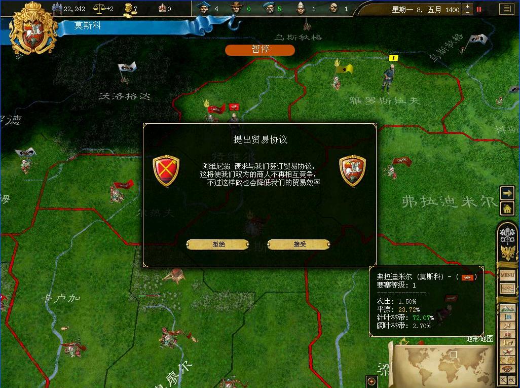 5月,丹麦,阿维尼翁以及吕讷堡先后向帝国提出贸易协议.现在帝国在贸易上尚处于起步期,不宜树敌过多,所以这些协议被全部接受了