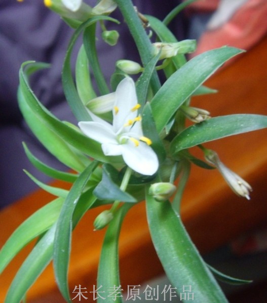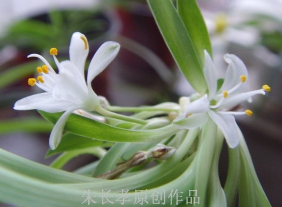 俺这人有种花的爱好,但是往往种瓜不得瓜,种豆不得豆,所以历经不知多少次花草的死亡,才发现无所畏惧的吊兰,我种的这种吊兰连我自己都不知道它是什么品种,但是它清新淡雅,顽强的生命力却深深感染了俺,所以俺就在家中了很多这种吊兰。从三月下旬开始我窗台的几盆吊兰争相开花,要知道它们冬天是无法存活的,只是靠着暖气才顽强生存下来(详见图1),真让人怜惜。花朵淡雅,每个小花朵只有手指甲那么大(详见图2),每朵花也就两天的时间就开败,趁着清明时节到来,俺用数码相机把它们保留下来,与大家一起享受这个生机勃勃的清明时节。