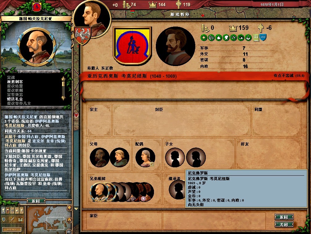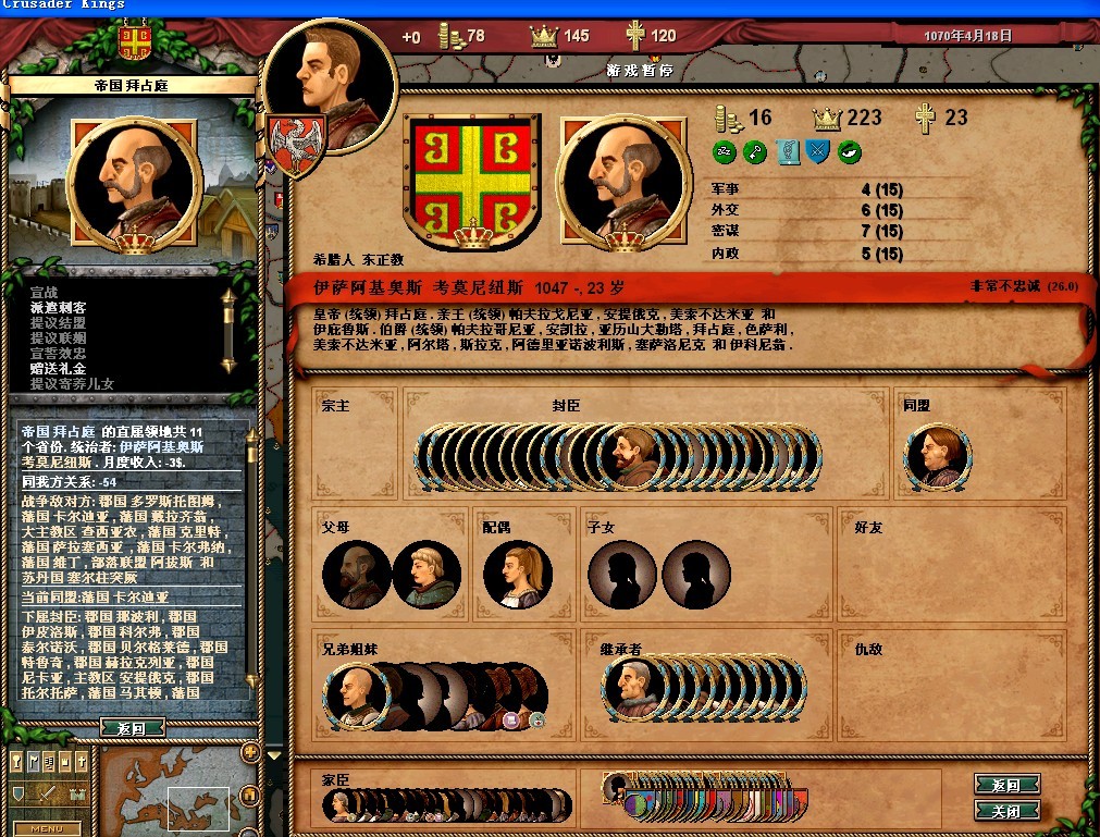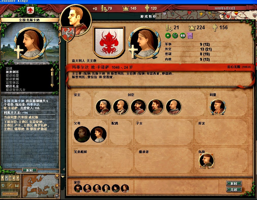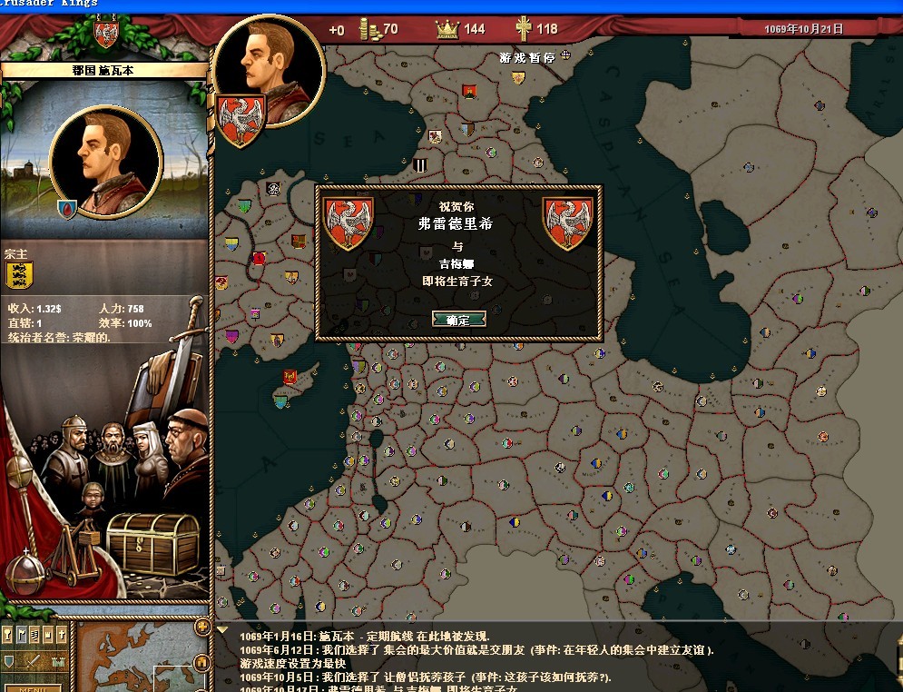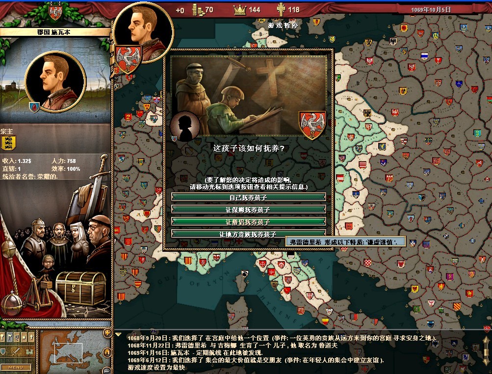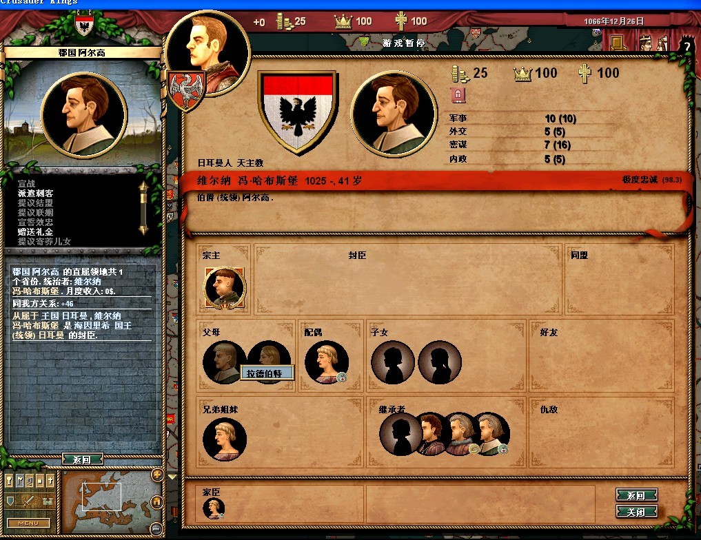 弗雷德里希的属性还可以,领地的收入很垃圾。把法律更改一下,目前我用的是血亲继承权,君权至上,以及王室成文法(目前没封臣,用这个法律军队强)