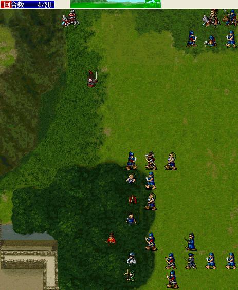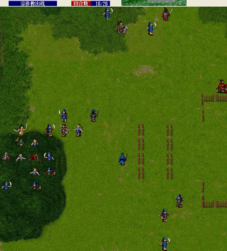 5回合:跟据战棋王帖子的提示,敌人会优先攻击自己左面敌人,从此显示,灾星会下移一格跑到汤怀的右面攻击,就可以0经验甩灾星,不用去担心这两回合的伤害,在树林的灾星仅对穿3级甲的汤抔有55-48的伤害,吃个粗粮就无事.张显的站位会让罗延庆下一格,让出吉青入城的位子,由于牛皋的hp在罗先生的击退范围内,先走远点.王贵站位随便. S/L武术家烧柴桂命中.(5-6)