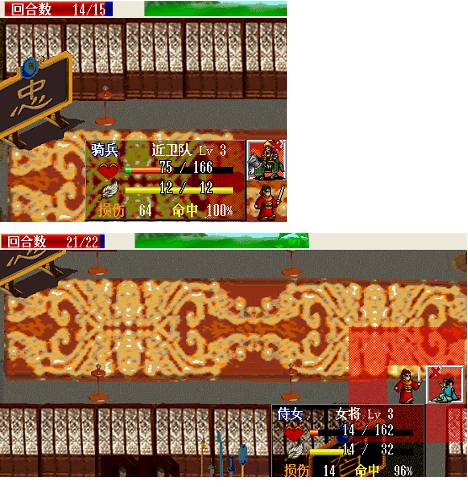张显下移第一次攻击吉青.诸葛给王贵吃粗粮,王贵自己吃一个.吉青会到90%的地型去攻击岳帅,王贵也那S/L挺一下.(图02-2)