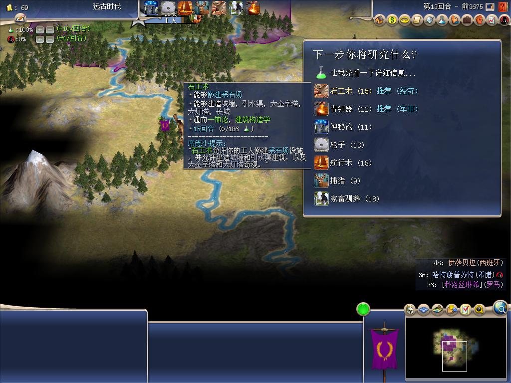 铁器完成,失望大于希望,开始从头老老实实研究王道的理论路线,不过罗马还好了,只需要在实践类科技上研究2个,如果选的是中国。。那就还要在这条不归路上再走2步,到那时就真的不能回头了哇