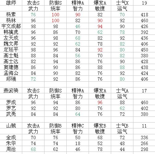 瓦岗人物数值再烂,其属性最多降一档,保留了原ccz的特点。