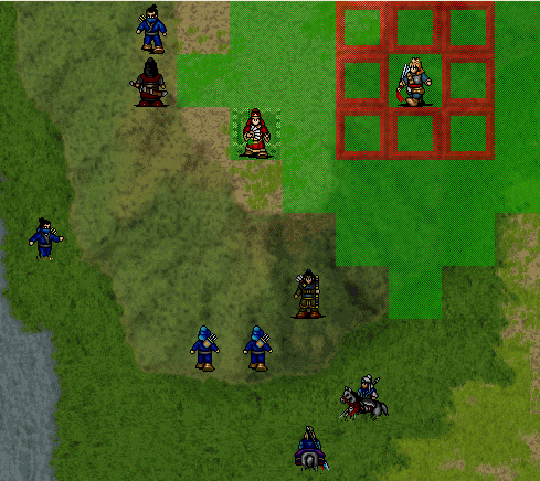 10、刀兵走起,同时让一人接应。不需要把骑兵压到水里打,否则谢映登打不到他。