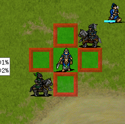 第三回合苏护拉全忠围攻杀掉步兵,第四回合后移到只有2个骑兵能打到的位置,第五回合开始站位如图3