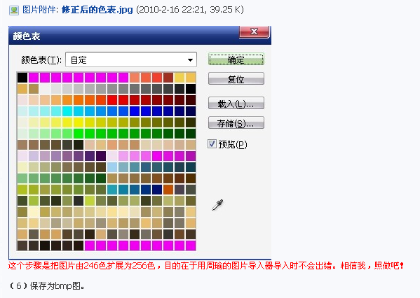 PS:要能导入游戏中,必须转为246色。该做的都做了,不知哪里出错。