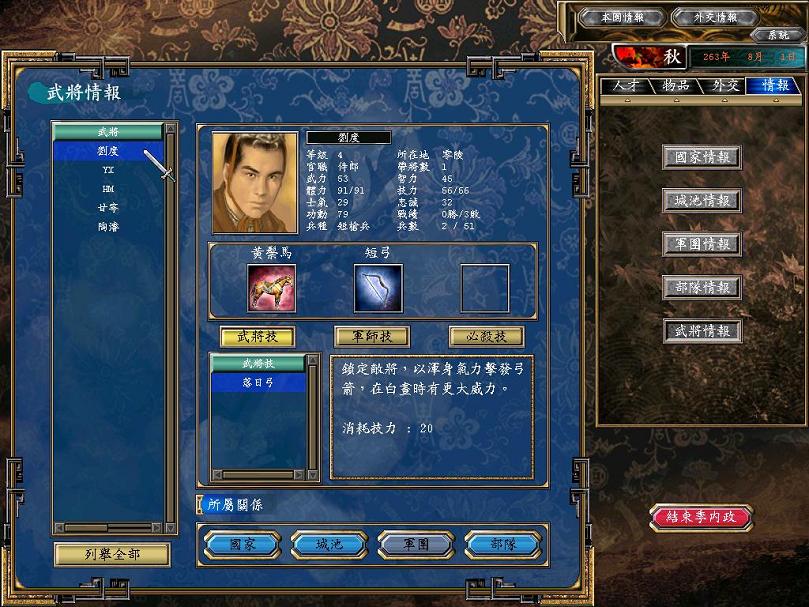 侦察了一下,哦?零陵也只有3个武将啊!好,继续征战!所谓以战养战!这些边远地区,