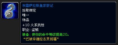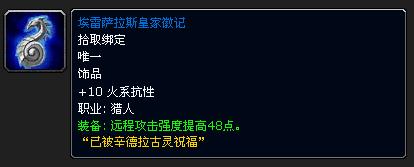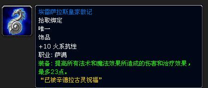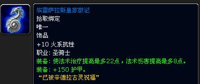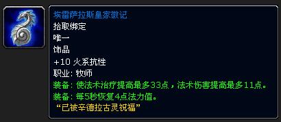 装备后效果:在成功施放法术后有2%几率可以触发100%魔法恢复的效果,持续15秒。