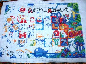 狠狠地绣了绣,于是,斑马的脑袋已经出来了。不要以为没多少哦,下面的白色都已经填上了呢。
