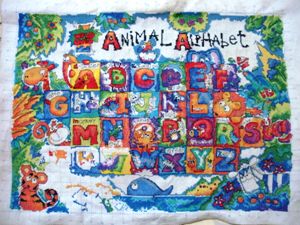 斑马的草也绣了绣,果子还差一种颜色,之后就可以勾边了: