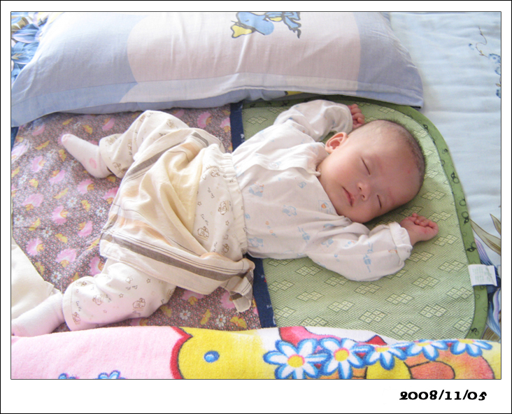 【宝宝一个月时候的照片,应该是满月时候的照片,不会爬也不会说话,每天她唯一要做的二件事,就是吃了睡,睡了吃】