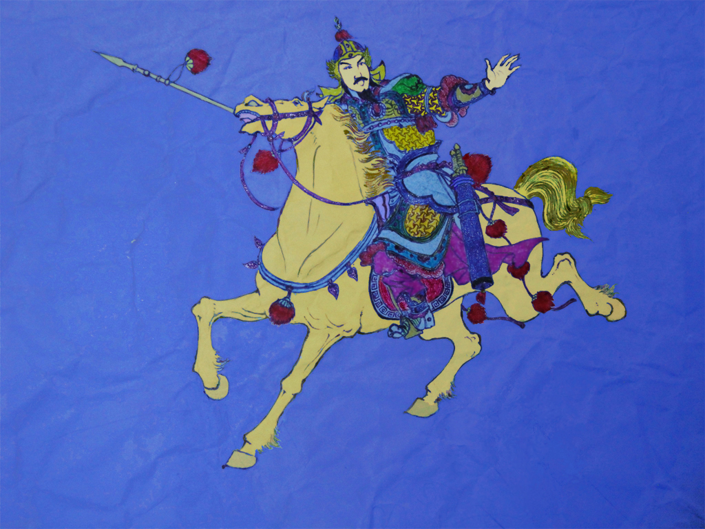 几年前临摹的《兴唐传》长蛇阵一册中的秦琼,用数码相机拍下来,用PS上了部分颜色。